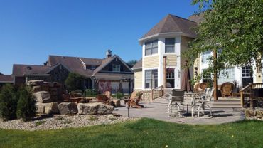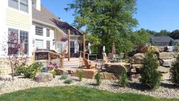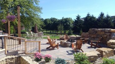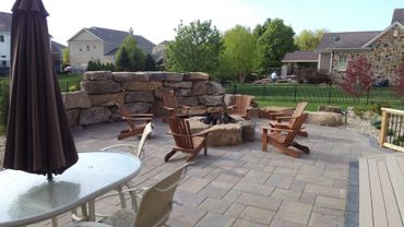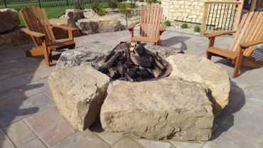 fire pit made of boulders matching the wall completes the feeling of being in one of their favorite