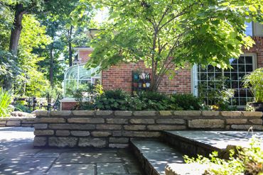 The scope of this private backyard included lifting and resetting the cut bluestone patio and