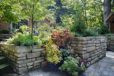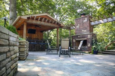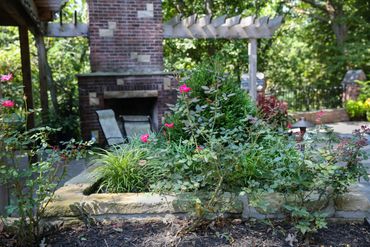 rebuilding the limestone planters. The addition of a covered bar area and an outdoor fireplace